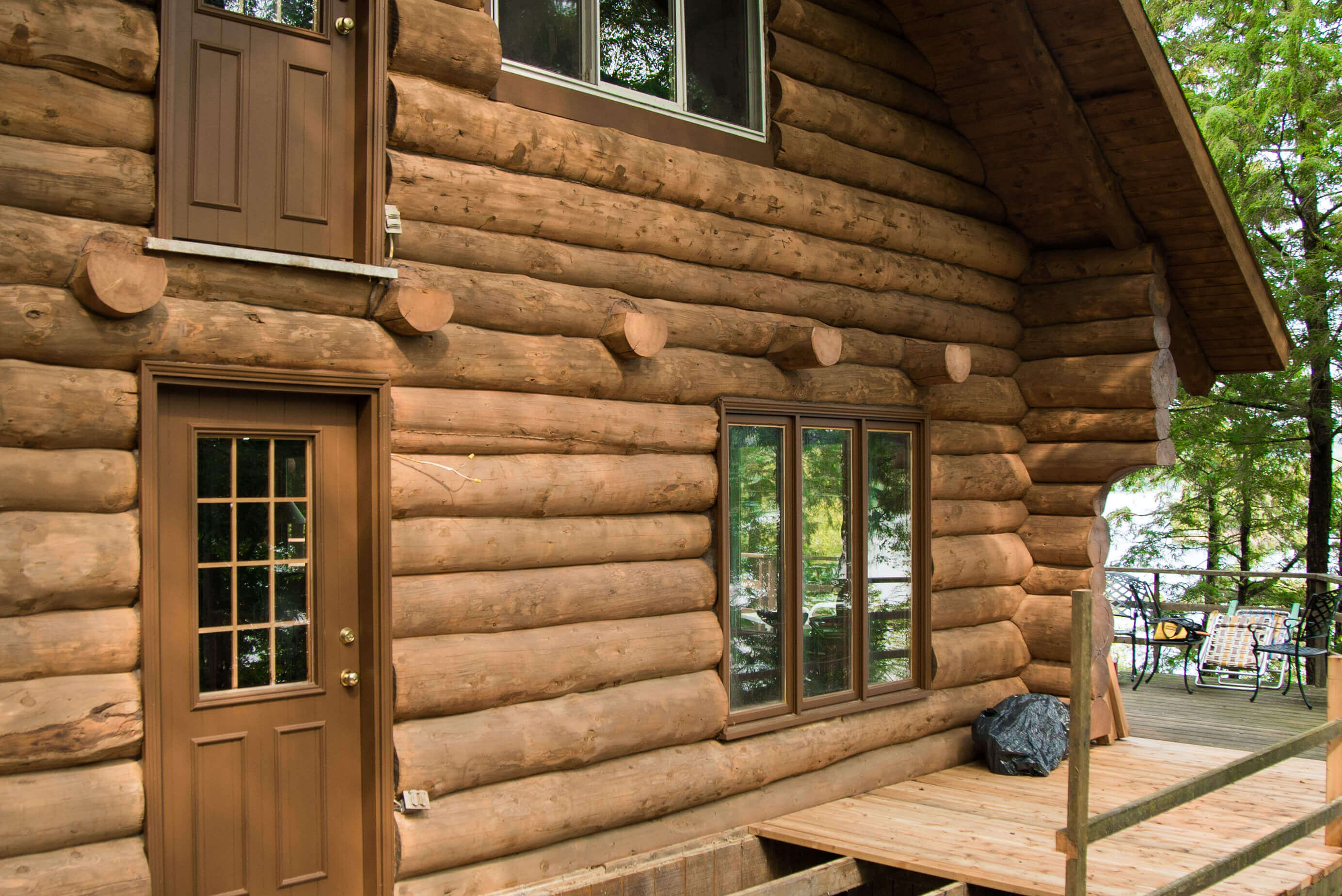 La Blanche glass blast repairing logs and re-finish