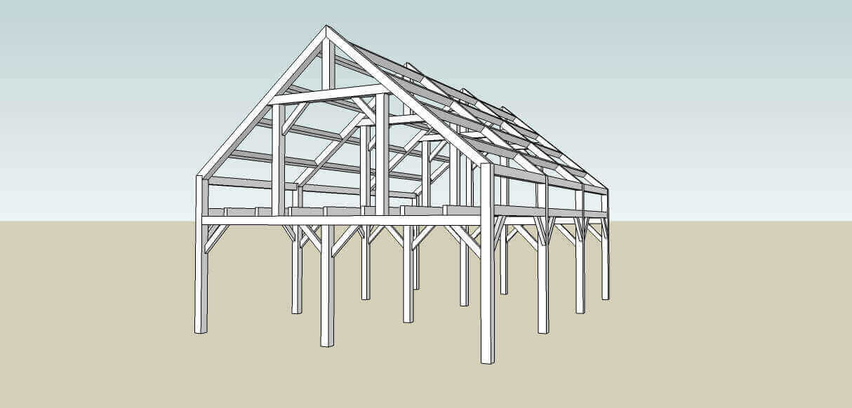 Cape cod standard timber frame made from dry white pine timbers